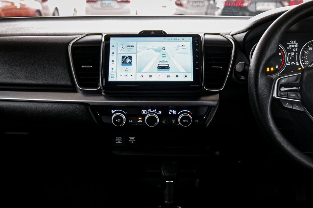 ภายในห้องโดยสารตกแต่งอย่างลงตัวด้วยโทนสีดำ เบาะนั่งนุ่มนวล พวงมาลัยมัลติฟังก์ชัน พร้อมหน้าจอเครื่องเสียงแบบสัมผัส รองรับการเชื่อมต่อผ่าน Bluetooth และ USB ทุกองค์ประกอบให้ความรู้สึกหรูหราตามแบบฉบับของฮอนด้า เหมาะกับผู้ที่กำลังมองหา ฮ อน ด้า ซิตี้ มือ สอง รถ บ้าน ที่ทั้งสวยและสภาพดี