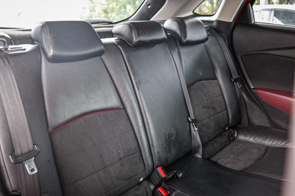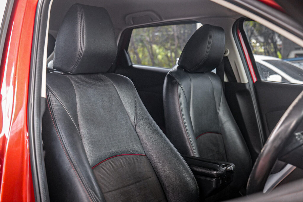 Mazda CX-3 2016 มาพร้อมแนวคิดการออกแบบ KODO: Soul of Motion ที่เน้นความมีชีวิตชีวาในทุกมุมมอง ตัวถังสีแดงเงางามสะดุดตา เส้นสายโค้งเว้าให้ความรู้สึกสปอร์ตและหรูหราไปพร้อมกัน ส่วนภายในตกแต่งด้วยวัสดุคุณภาพสูง โทนสีดำตัดแดงที่ให้ความรู้สึกพรีเมียม เบาะนั่งโอบกระชับ แผงคอนโซลออกแบบเรียบหรูพร้อมหน้าจอ Mazda Connect ระบบสัมผัสขนาด 7 นิ้ว รองรับการเชื่อมต่อทั้ง Bluetooth และ USB