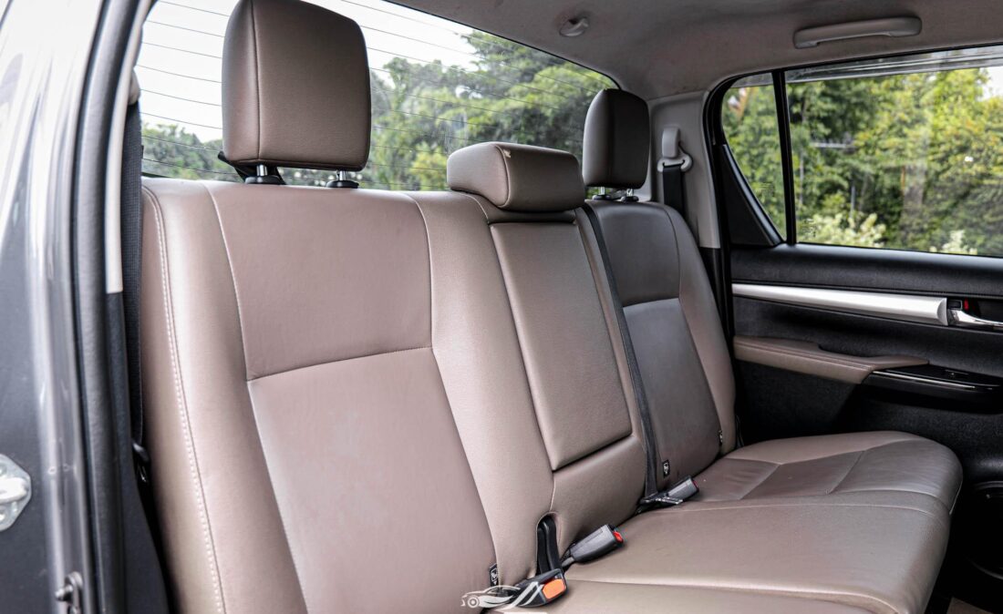 - ภายในห้องโดยสารที่กว้างขวาง: แม้จะเป็นรถกระบะ แต่ภายในห้องโดยสารของ Hilux Revo 2.4 นั้นกว้างขวางและสะดวกสบาย สามารถรองรับผู้โดยสารได้อย่างเต็มที่ อีกทั้งยังมีพื้นที่เก็บของที่สามารถปรับเปลี่ยนได้ตามความต้องการ